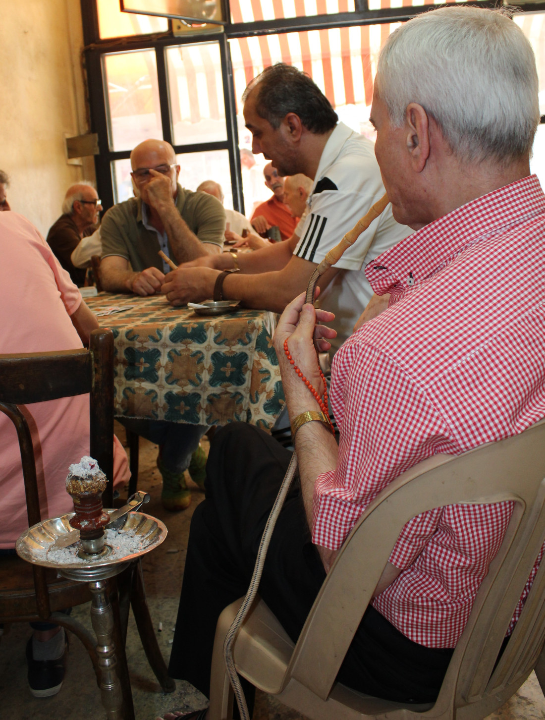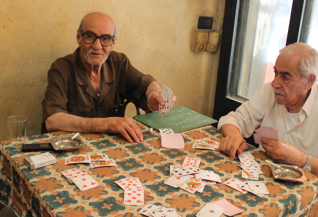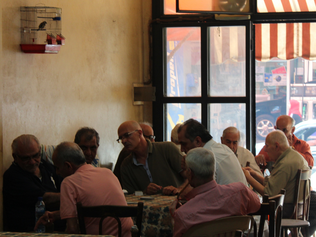 محلُّ في أحد شوارع ضاحية بيروت الجنوبيّة. هناك، ستجدهم. يجلسونَ على كراسيَ خشبيّة عتيقة متّسخة. يضعونَ أغراضَهم على طاولات، لفّها غبارُ الأيّام، وأكل من حديدها صدأُ الزّمن. زمنٌ توقّف عندهم، داخلَ هذا المحلّ وداخلَهم. هنا، كلُّ شيء يدل على الزّمن. أيدٍ لا تخلو من ساعات وتجاعيد. رؤوسٌ صلعاء بفعل الدّهر أو نوائبه، وأخرى غزاها الأبيضُ، أو شارف. ثمّة رؤوس من نوع آخر، رؤوس نارجيلة «عجمية» لا بـ «معسّل» هذه الأيّام. حتّى أوراق اللّعب أو «الشدّة»، هي أوراق «حقيقيّة»، لا على حاسوب ينتمي إلى هذا الزّمن. هنا، في «واحتهم» هذه، كلهم متشابهون. لا يمكنك أن تعرفَ، إن كنتَ أنت الغريب بينهم، أم هم الغرباء بينك… وحده عصفور سُجِنَ داخلَ قفص أحمر، يغرّد خارج السّرب، في هذه «القهوة» الخارجة عن الزّمن.